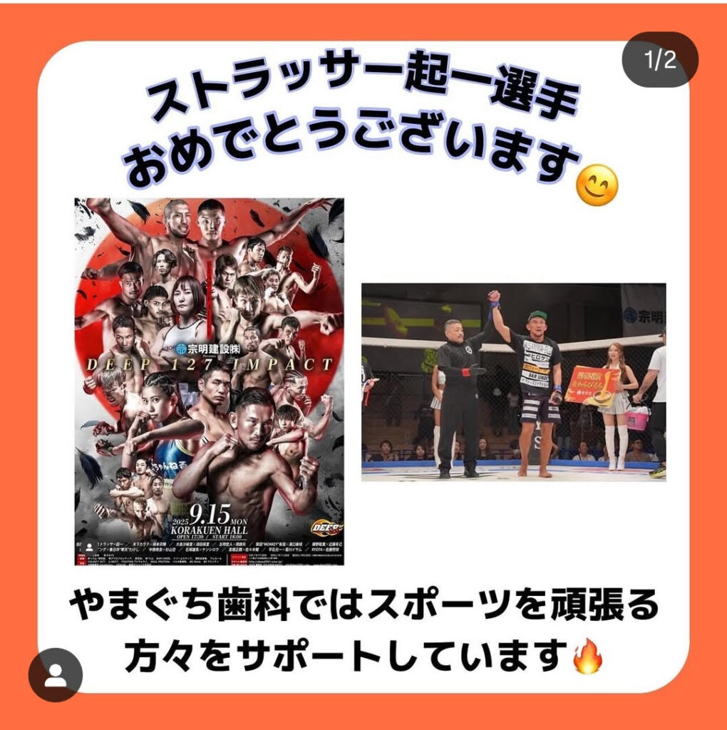 先日、東京で行われた総合格闘技【DEEP】にて、当院サポート選手のストラッサー起一選手が見事勝利をされました😊
