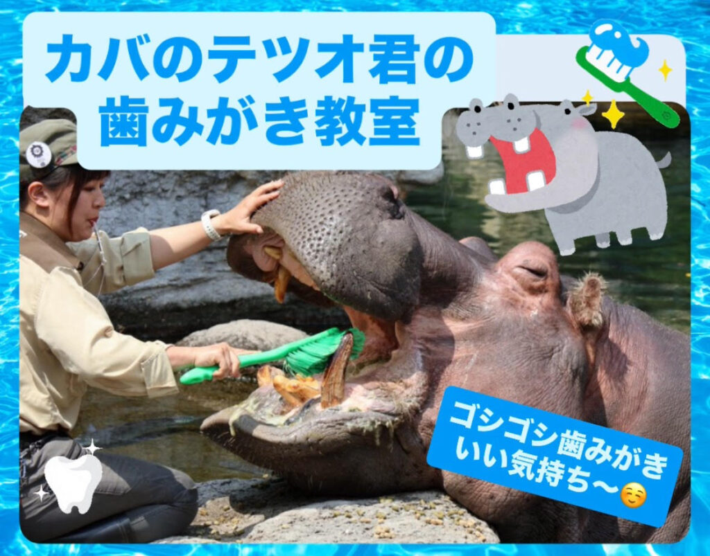 毎年「歯と口の健康習慣(6月4日〜10日)」に合わせて天王寺動物園で開催している「カバのテツオ君の歯みがき教室」をご存じですか?