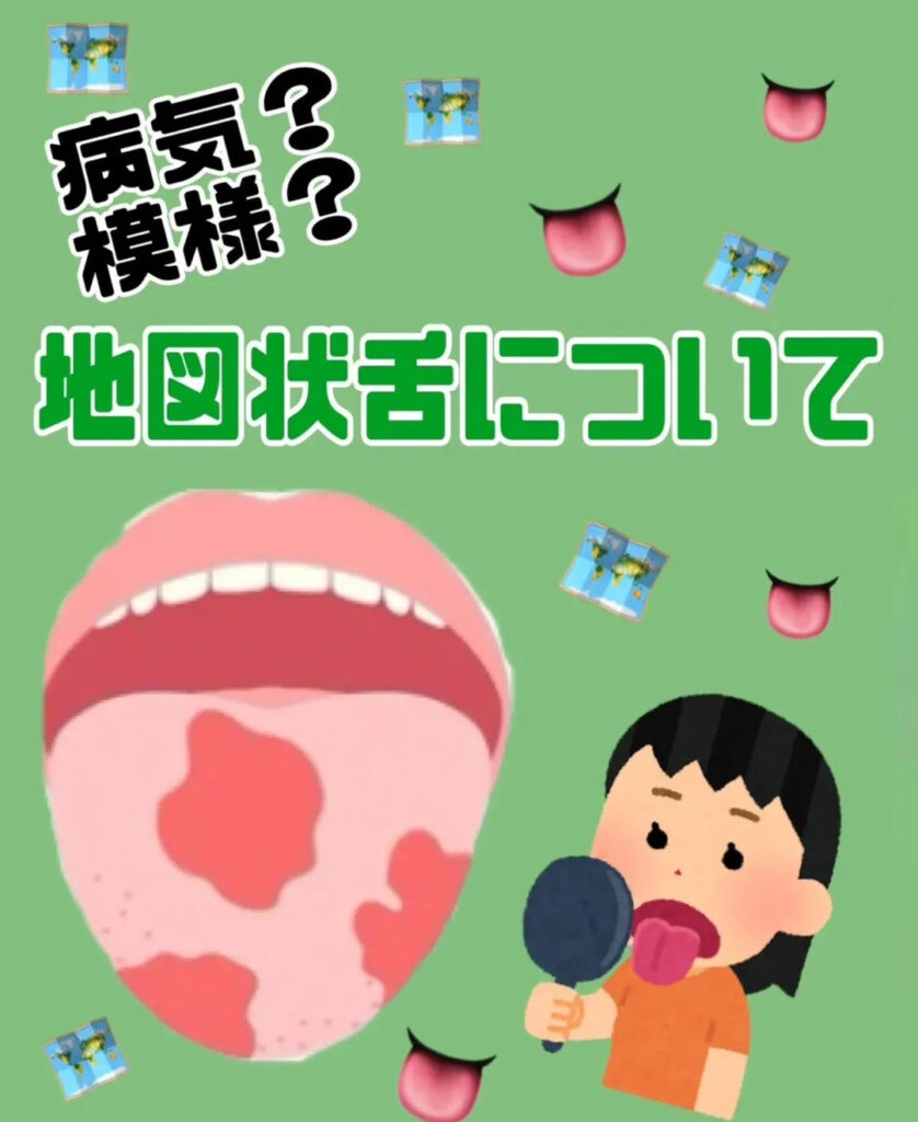 舌に赤い模様が出て、白いフチがつくことで、地図のように見える状態を「地図状舌」といいます