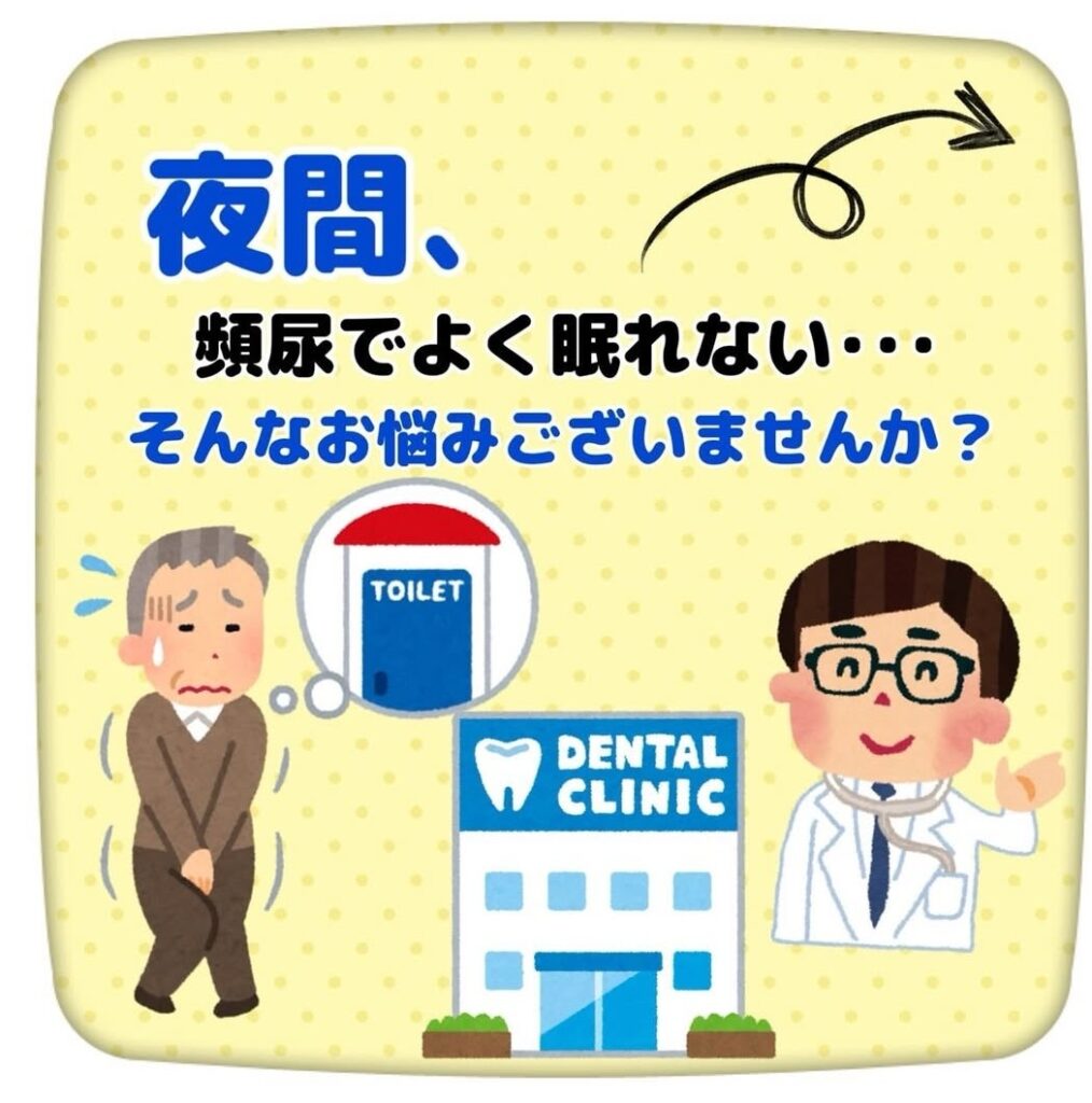 また、夜間頻尿のある方は口の乾き(ドライマウス)を伴うことも多く、唾液が減ることで・むし歯・歯周病・口臭のリスクも高まります👄