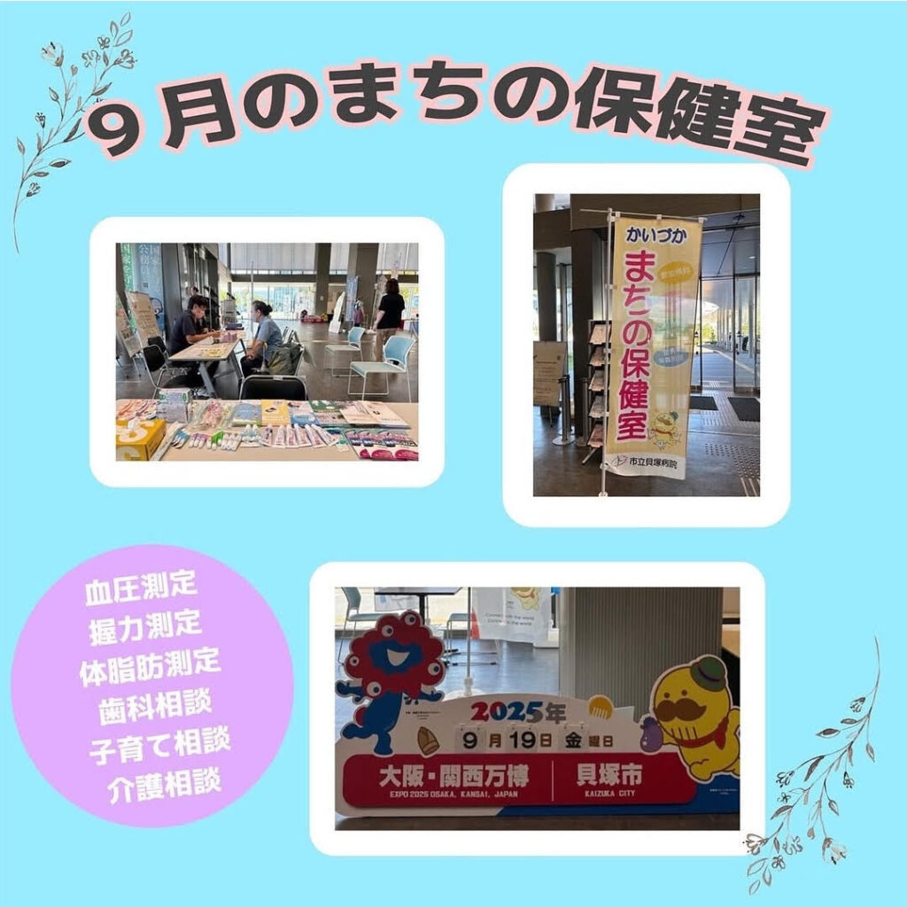「まちの保健室」は毎月第3金曜日貝塚市役所1階のロビーにて実施されています📒